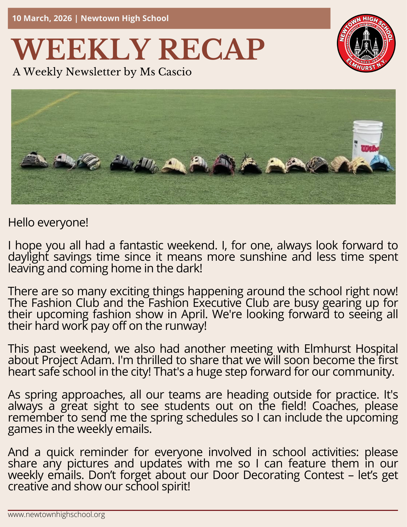 As spring approaches, all our teams are heading outside for practice. It's always a great sight to see students out on the field! Coaches, please remember to send me the spring schedules so I can include the upcoming games in the weekly emails.